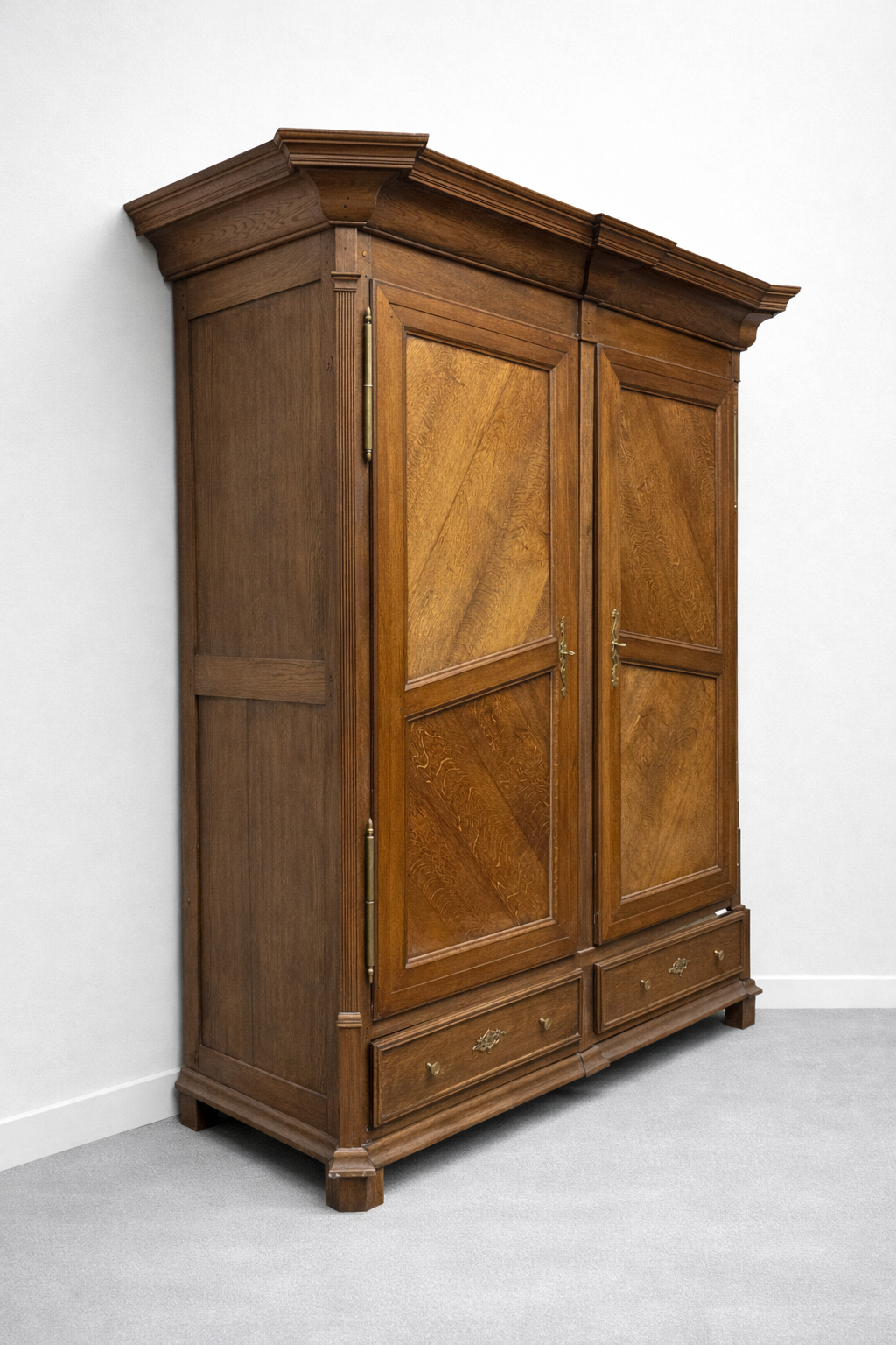 - Zeitloser, handgefertigter Schrank aus massivem Eichenholz, datiert auf ca. 1850. Robust und langlebig mit typischer Patina, authentischen Gebrauchsspuren und elegantem, klassischem Design.